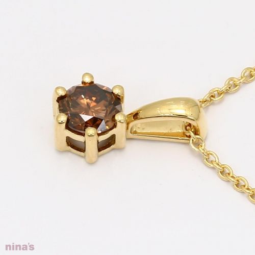 Add some sparkle to your life with this stunning 18 karat yellow gold solitaire champagne diamond necklace featuring an Australian Argyle champagne diamond of a richly coloured C6/7 hue and 0.40 carat in size. This piece will definitely sparkle, shimmer, and shine!
